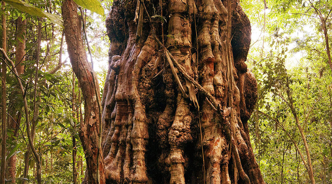 É isso que nos mostra igualmente a história do “avô da mata”, árvore ancestral há mais de 500 anos enraizada numa terra arrasada pelos impactos da ocupação colonial, com a qual abrimos este ensaio. Até pouco tempo atrás, a existência desta árvore esteve envolta em mistério. Apesar da ocorrência de pau-brasil na área do assentamento ter sido registrada durante estudos em parceria com os técnicos da Comissão Executiva do Plano da Lavoura Cacaueira (CEPLAC) do Ministério da Agricultura, Pecuária e Abastecimento, a árvore gigante era mantida em segredo pelos agricultores do Assentamento Pau-brasil, que temiam a sua derrubada por madeireiros. Até que sua história e localização foi amplamente divulgada em 2018 pelo botânico Ricardo Cardim.